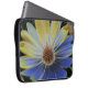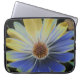 This awesome laptop bag features a beautifully detailed photograph of an African daisy flower. The photo has been digitally altered, resulting in a flower with half of its petals blue and half of them a golden yellow colour.