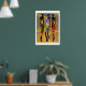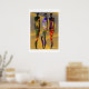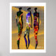 This African Desert Flowers poster is a stunning piece of contemporary art, featuring three stylish female silhouettes dressed in bright pastel geometric patterns. Set against a desert backdrop, the artwork blends bold colours and elegant forms, creating a visually striking and modern aesthetic.