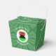 Take out favour box with an angel wearing the flag of the African Diaspora for holiday party decorating or Christmas decor. The African American Flag Christmas angel is found inside a white, fractal circle of squiggly squares. The background is a green fractal squiggly squares. Add your own text or personalise with a name and the year.