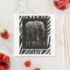 A photograph of an elephant in a zebra skin frame with "Africa" text. Match these napkins with paper plates with the same or a similar image.