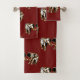 This is a lovely towel set for adventurous nature-lovers featuring decorative pattern art of two elephants on a maroon backgound. Customise the background colour to match your own bathroom's decor!
