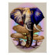 Surreal African Elephant, wild life Symbolic Animal, with Acacia Trees, and the Kilimanjaro Mountain on Background, Pastel Colours Background. Original Vector Illustration Copyright BluedarkArt TheChameleonArt.