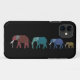 Graphic illustration of colourful African elephants walking. Elephants are endangered animals and their habitats need protection. Customise this design with your choice of backround colour. Original artwork by Magins Creations.