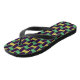 Eye-catching purple and green flip flops with African-inspired geometric patterns, ideal for beach outings.