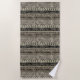 A summer beach towel with a geometric pattern inspired by traditional motifs from Africa. It's hand drawn with a black ink pattern and neutral background colours. This design incorporates stripes, squares, triangles, dots, and more shapes. It also has a distressed texture for a rustic feeling. Resize the pattern and add any text if desired. Unique beach towel for anyone that loves African culture!