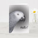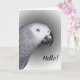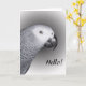 Cute greeting / note card of an African Grey Parrot saying "Hello".