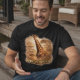 The artwork is created with textured, blended edges so it prints seamlessly into the fabric, while the gold-sand typography ensures the message remains bold and visible on dark tees.