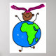 Whimsical childlike drawing of a little ethnic girl dressed up as a globe of Africa.
