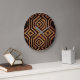 This stunning large clock features a traditional Kuba cloth design from the Kuba kingdom of central Africa, located in modern-day Democratic Republic of Congo. The intricate patterns and rich textures of the Kuba cloth are beautifully captured in this clock, showcasing the artistry and cultural heritage of the region. The clock's colours, black and tan, add a touch of elegance and sophistication to any room. Perfect for those who appreciate unique and culturally significant decor pieces.