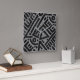 This wall clock features an African geometric motif pattern print. The design showcases black and gray colors, making it a striking addition to any room. Crafted from Grade-A acrylic, this 10.75-inch square clock is vibrantly printed using the AcryliPrint®HD process. It includes a non-ticking mechanism and a pre-installed backside hanging slot for easy installation. Perfect for indoor use, this clock requires one AA battery (not included).