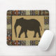 Digital image of a frame of African mud cloth in rich browns. The centre has a heavy woven fabric with the silhouette of an elephant.