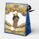 African American Prince Royal Blue & Gold Elegant Favours featuring adorable African Prince wearing a gold crown alongside fancy gold script font with baby's name on the front (Royal Blue, Gold and White) Perfect for Royal Prince Baby Shower or African American Prince Royal Birthday Party.