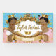Elegant Pink and Blue Colour Block Banner with Gold sparkles features adorable African American Prince and Princess with gold crowns on an elegant gold frame. All Text is Editable. Great for (boy and girl) twins baby shower or twin boy and girl 1st birthday party