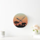 African Safari Sunset Elephant Silhouette Round Clock