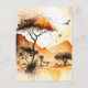 African Safari Sunset Watercolor with Acacia Tree Postcard