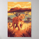 Embrace the wild beauty of the African Savannah with this stunning lion artwork. Featuring a majestic lioness striding through golden grasslands under a vibrant sunset sky, framed by acacia trees and distant mountains. This digital illustration captures the essence of the savannah’s raw power and serene landscapes, perfect for adding a touch of nature’s grandeur to your space.