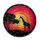 African sunset illustration with red grunge sun, giraffe and tree silhouette decoration on black background. It is possible to change the background colour and to add different one to the design with your choice.