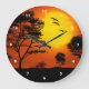 Beautiful digital art African sunset scene with trees, birds and stars.