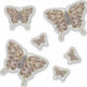 Zig-zag patterns and animal prints adorn the wings of this swallowtail butterfly, inspired by the designs common to African clothing, artwork, and woven baskets, in tans, reds, whites and blacks.
