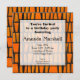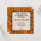 A cool and funky orange and black african tribal pattern. Orange oddly shaped rectangles and squares with a pottery texture on a black background. Could also be seen as an old bookcase pattern. Personalise with your party details.