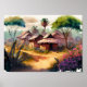 African Village Watercolor Digital Art Poster