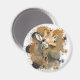 Behind the realistic giraffe head, an abstract paint splatter background emerges, composed of warm earthy tones. The blend of colours, ranging from rich browns to golden yellows and hints of rustic oranges, creates a dynamic and vibrant backdrop. The abstract paint splatters add an artistic and expressive touch to the magnet, enhancing its visual appeal and evoking the untamed beauty of African wildlife.