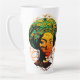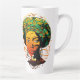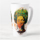 My Design features a stylised portrait of a Beautiful African woman wearing a colourful headwrap. The headwrap is adorned with green and yellow leaf patterns. Her face is filled with a sunset silhouette, complete with birds flying across the sky and a landscape with trees. She wears large, ornate earrings and a beaded necklace. Original Pop Art Style Vector Illustration Copyright BluedarkArt TheChameleonArt.