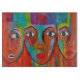 This custom cutting board features a contemporary oil painting of three African women's faces vibrantly painted in colorful brush textures.