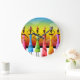 Folk art with a group of traditional African women balancing pottery on their heads dressed in vibrant colourful folk dresses.