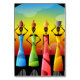 Folk art with a group of traditional African women balancing pottery on their heads dressed in vibrant colourful folk dresses.