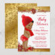 Afro Boy Red Gold Christmas Baby Shower Invitation