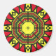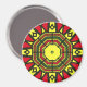 Afrocentric mandala magnet design was created using black, red, yellow and green magic markers and a kaleidoscope iPad app.