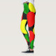 Whimsical leggings designed using different sizes of red, yellow and green polka dots on a black background. Customers can move and resize each dot.