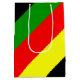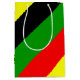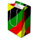 African inspired Red, Yellow, Black and Green diagonal striped gift bag. Fill it with goodies for Christmas or Kwanzaa.