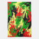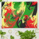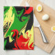Dramatically vivid swirls of Afrocentric inspired red, yellow, black and green designed kitchen towel.