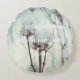 Elegant nature themed Round Pillow featuring a photo of dried flowers covered with fresh snow on a cold winter day. Minimalist design in pastel tones (light blue, white, brown). Great addition to contemporary, Scandinavian, japandi style home decor. Lovely gift for winter birthday or any special occasion.