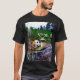 I give wanted to give this a 4 instead of a 5 because these Basic DARK T0shirts run unexpectedly SLIM or Narrow. Which is great if you do not have a potbelly, but I have a paunch. It isn't the shirt's fault that I've got a beer belly. The design and shirt itself is a quality cotton shirt. The color is more of a deep purple, but still a very pretty color. The Basic DARK T-shirts run a bit SLIMMER than the Basic Ts. The neck is a fraction narrower (or seems to be narrower) also. I'm a paunchy middle-aged woman and my neck is 12 inches (31cm) thick and the neckline fell about the same as in the photo of the man, and I had the desire to tug it a bit. So if you're a thick necked man or like loose shirts, be aware these are slimmer shirts. Once I get rid of my lockdown paunch it'll look great. The shirt washed well in cold water with no apparent bleeding. We don't have a dryer, so it hung dry. Did not shrink. Love the colors and the design. The design looks smaller on my shirt than it does on the model on-line. But still, it looks good on the shirt. The printing looks as it does on the model, just the size seems fractionally smaller. Washed garment in cold water, hung dry and design appeared unaffected.