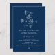 Announce and share your happily ever after in style with our modern navy blue theme design (It's an after the wedding party) wedding elopement celebration invitation card. It is ideal for couples who have decided to celebrate their best day. With its sophisticated yet playful design, this invitation is sure to set the tone for an unforgettable event. The invitation card features a modern and minimalist script design theme, adding a touch of timeless elegance to your celebration. Designed by TeeshaDerrick