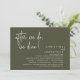 Announce and share your happily ever after in style with our modern theme design (after we do, we dine!) wedding elopement celebration invitation card. It is ideal for couples who have decided to celebrate their best day. With its sophisticated yet playful design, this invitation is sure to set the tone for an unforgettable event. The invitation card features a modern design, olive green theme, adding a touch of timeless elegance to your celebration. Designed by TeeshaDerrick