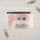 Aftercare Instructions Lash Rose Gold Drips Spark Business Card. Fabulous Makeup Artist Eyelash Lashes design with script calligraphy text, rose gold glitters and eye-catching sleek background Business Card, with woman eyes illustration. Custom this feminine business card design adding your own logo, your name, your profession, choose your own script font, change or delete any element and you'll have an amazing tool for attract clients and grow your business.