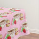 Tablecloth features an original food-themed marker illustration of a porcelain teacup, macarons, and a scone with cream and jam.