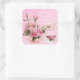 Afternoon Tea Party Pink Peach Rose Floral Teapot Square Sticker