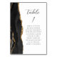 The left-hand edge of this elegant modern wedding table number card features a black watercolor agate border trimmed with faux gold glitter. The word "table" appears in charcoal grey handwriting script on a white background. Add the names of your guests who are assigned to each table.