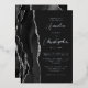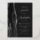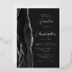 The left-hand edge of this elegant modern wedding invitation features a black watercolor agate border trimmed with faux silver glitter. The customizable text combines script and sans serif fonts in real silver foil on a dark background. The reverse side features a matching agate design.