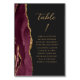 Agate Burgundy Gold Modern Script Dark Wedding Table Number