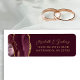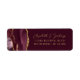 The left-hand edge of this elegant modern wedding invitation return address label features a burgundy watercolor agate border trimmed with faux gold glitter. The customisable text combines gold-coloured handwriting and sans serif fonts on a burgundy red background.