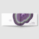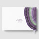Not all wedding designs are created equal. The asymmetrical layouts for the pieces in this striking wedding set prove that's not a bad thing! Wavy bands of colour in contrasting shades of violet purple and green with a centre of glittering crystal form a geode/agate accent on most pieces in the set. The wedding 'Guest Book' shown here features the above plus a template to add a personal message on the front, your names and wedding date on the back cover. Search ID647 to see all the coordinating pieces in this set.