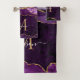 Agate Geode Purple Violet Gold Monogram Script Bath Towel Set