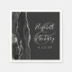 Agate Geode Script Black Silver Dark Wedding Napkin