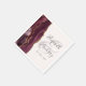 These elegant modern wedding napkins feature a burgundy watercolor design trimmed with faux gold glitter. Easily customise the charcoal grey text on a blush pink background, with the names of the bride and groom in handwriting calligraphy over a large, pale dusty burgundy ampersand.